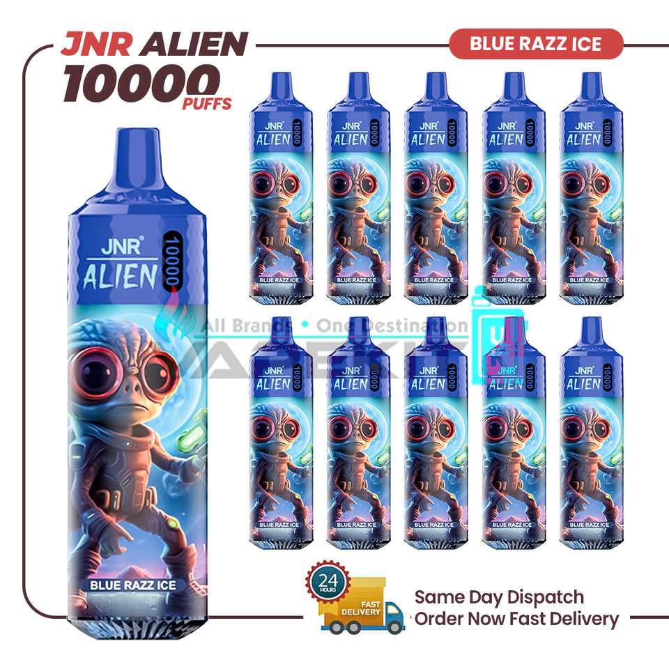 - Portable: Lightweight and easy to carry, the Blue Razz Ice JNR Alien 10k is perfect for vaping on the go.