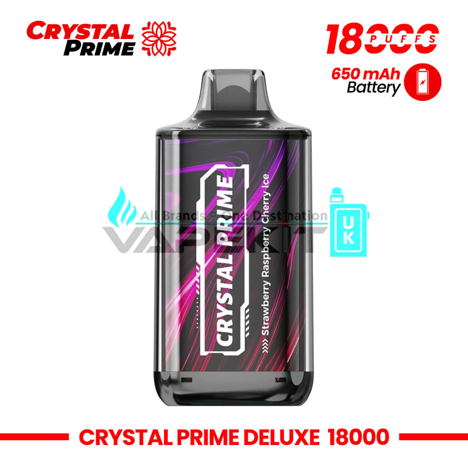 The Crystal Prime Deluxe 18k Strawberry Raspberry Cherry Ice Vape is a popular disposable vape choice that combines convenience, affordability, and a delicious mix of fruity flavours. With a remarkable puff count of 18,000, this vape ensures a long-lasting and enjoyable vaping experience, perfect for both beginners and seasoned vapers. Priced at just £10.99, it offers incredible value for anyone looking to switch to vaping or try out a new flavour.