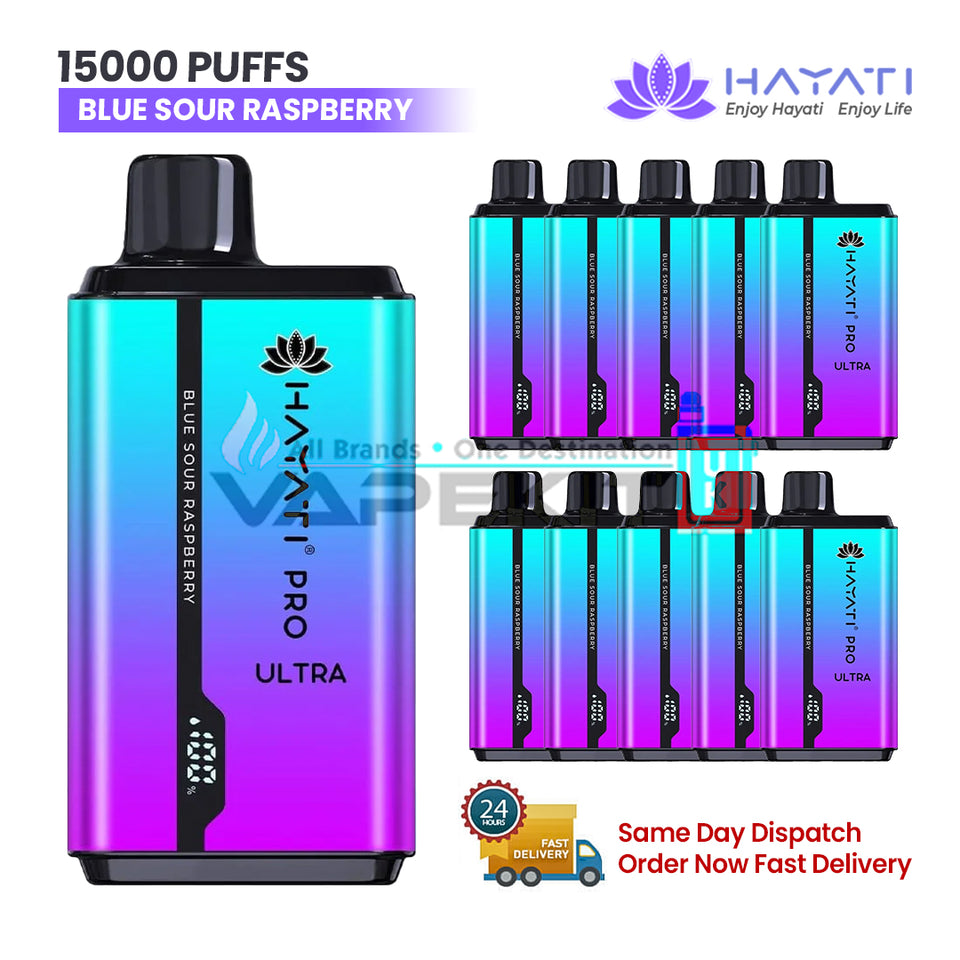 The Hayati Pro Ultra 15000 Puffs Blue Sour Raspberry Disposable Vape is competitively priced at £12.99 for a single unit. For those who wish to purchase in bulk, a box of 5 is available at £48.99, offering a cost-effective solution for frequent users. Available online at VapeKit UK, this product offers convenience, affordability, and quality for vaping enthusiasts.