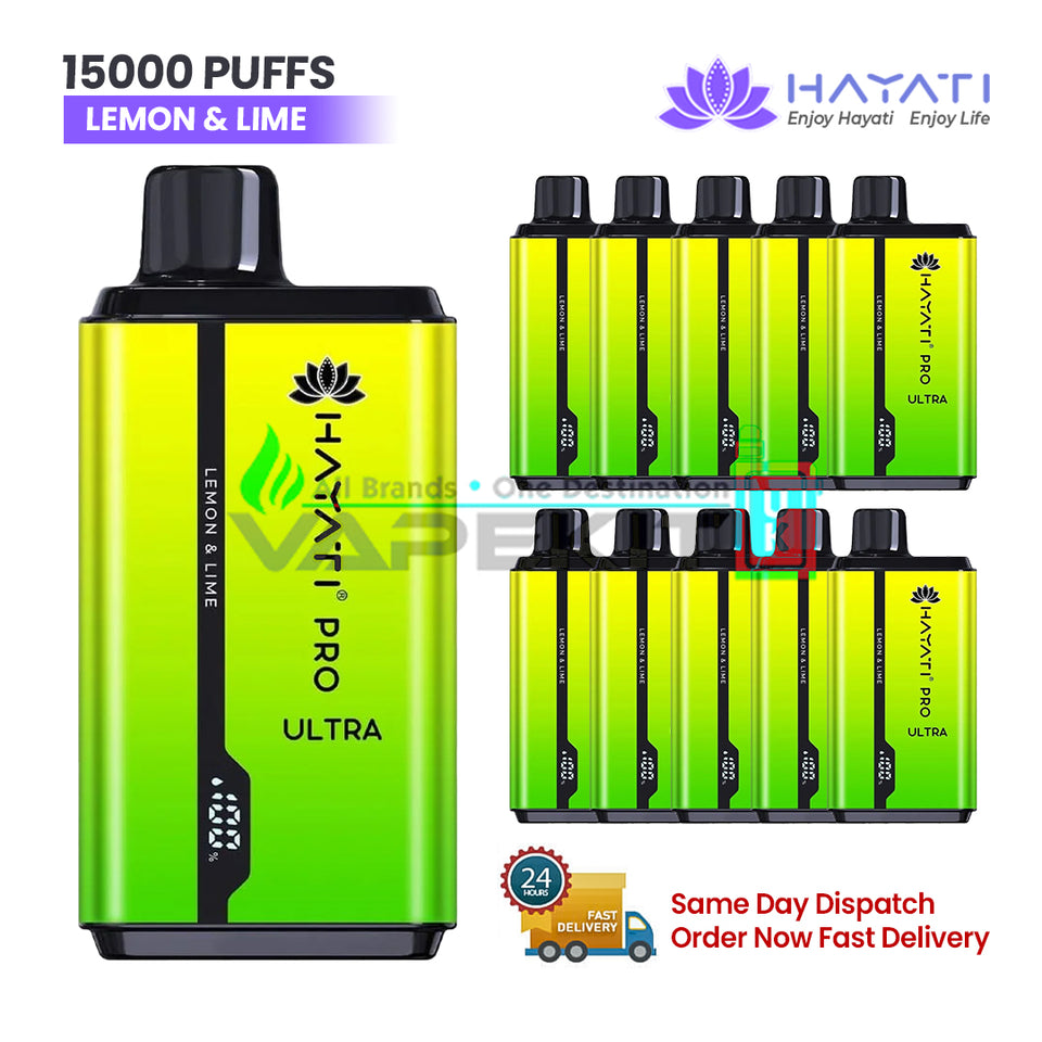 The Hayati Pro Ultra 15k Puffs Lemon & Lime Disposable Vape is priced at £12.99 for a single device. For those looking to stock up, a box of 5 is available at £48.99. This cost-effective bundle is perfect for regular vapers who want to ensure they always have a vape on hand.