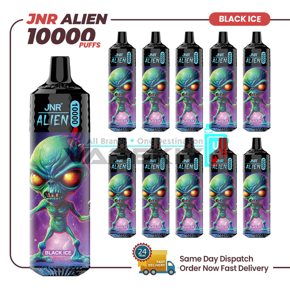The JNR Alien Black Ice 10000 Puffs Disposable Vape is competitively priced at £9.99. Given its high puff count and flavour profile, it represents excellent value for money. Users can enjoy an extended vaping experience without needing to purchase multiple devices in a short period.