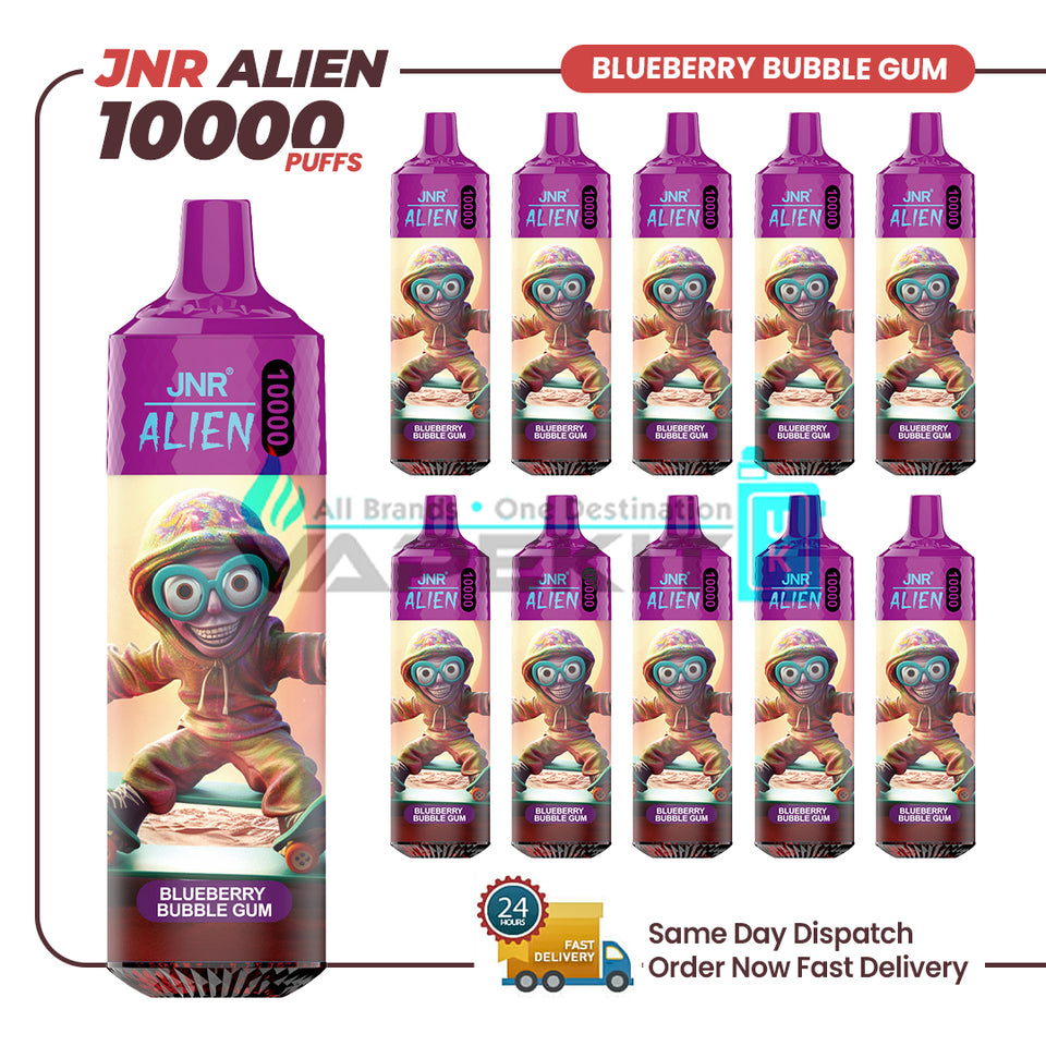 The JNR Alien Blueberry Bubblegum 10000 Puffs Disposable Vape stands out in the disposable vape market for its impressive puff count and delightful flavour. At £9.99, it is an affordable option for anyone looking for a convenient and enjoyable vaping experience. With its user-friendly design and long-lasting performance, this vape is an excellent choice for both newcomers and seasoned users alike.